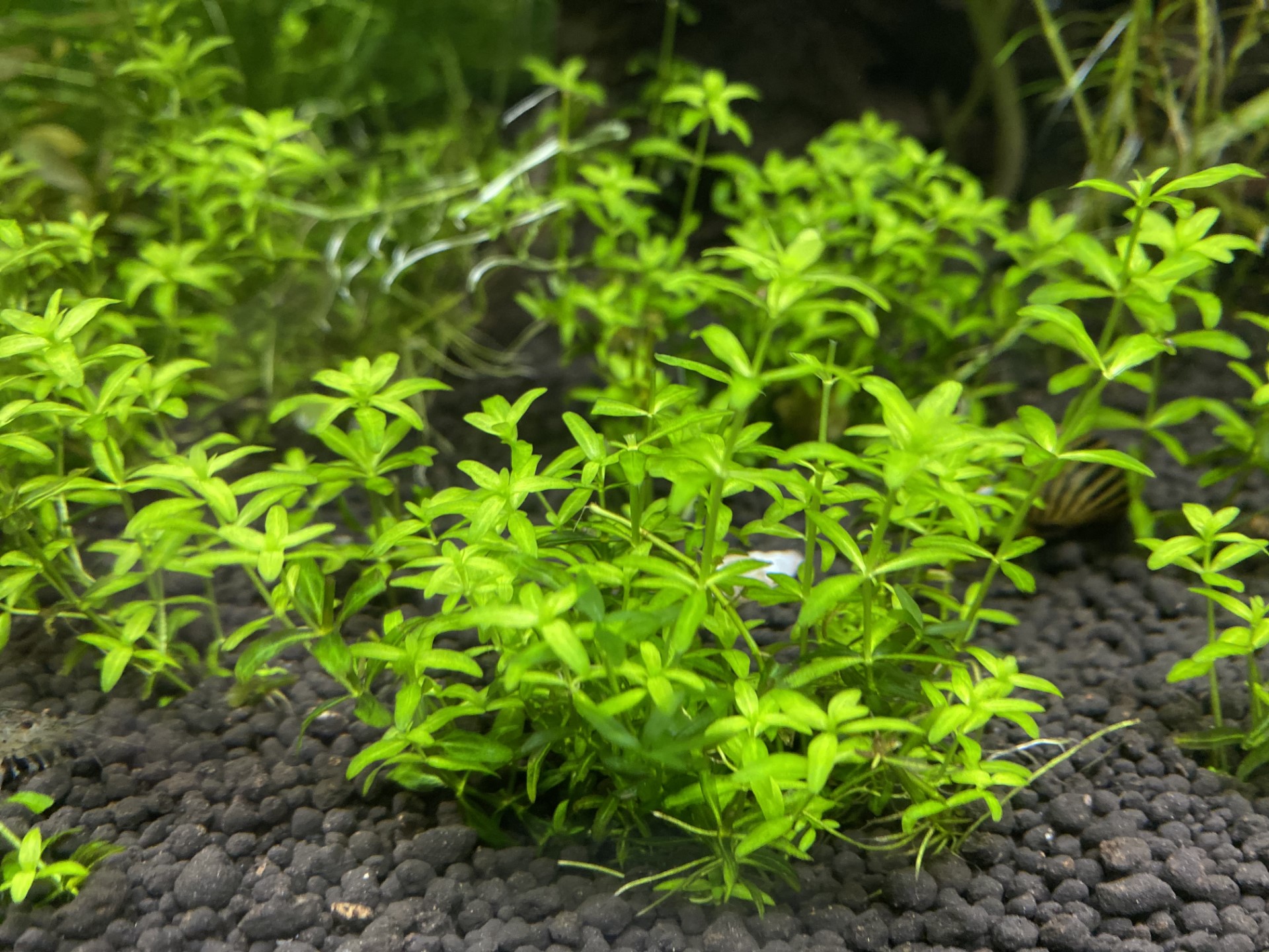 Elatine triandra ist eine kleine, grazile Pflanze, die sowohl unter Wasser wie auch als Landpflanze auf nassem Boden wächst. Sie ist weit verbreitet in Eurasien, Australien und Neuseeland und kommt als Pionierbesiedler auf nackten Schlammflächen vor, z.B. in Teichen und Reisfeldern. Als Aquarienpflanze ist sie zwar nicht ganz neu, aber zur Zeit eine echte Rarität, da weitgehend aus den Wasserpflanzen-Handelssortimenten verschwunden. Der Dreimännige Tännel wächst unter Wasser zunächst teppichartig kriechend, später aber auch dicht-buschig und etwa 10 cm hoch. Die Stängel sind sehr zart und weich, die länglichen Blätter haben eine frische hell- bis gelbgrüne Färbung.