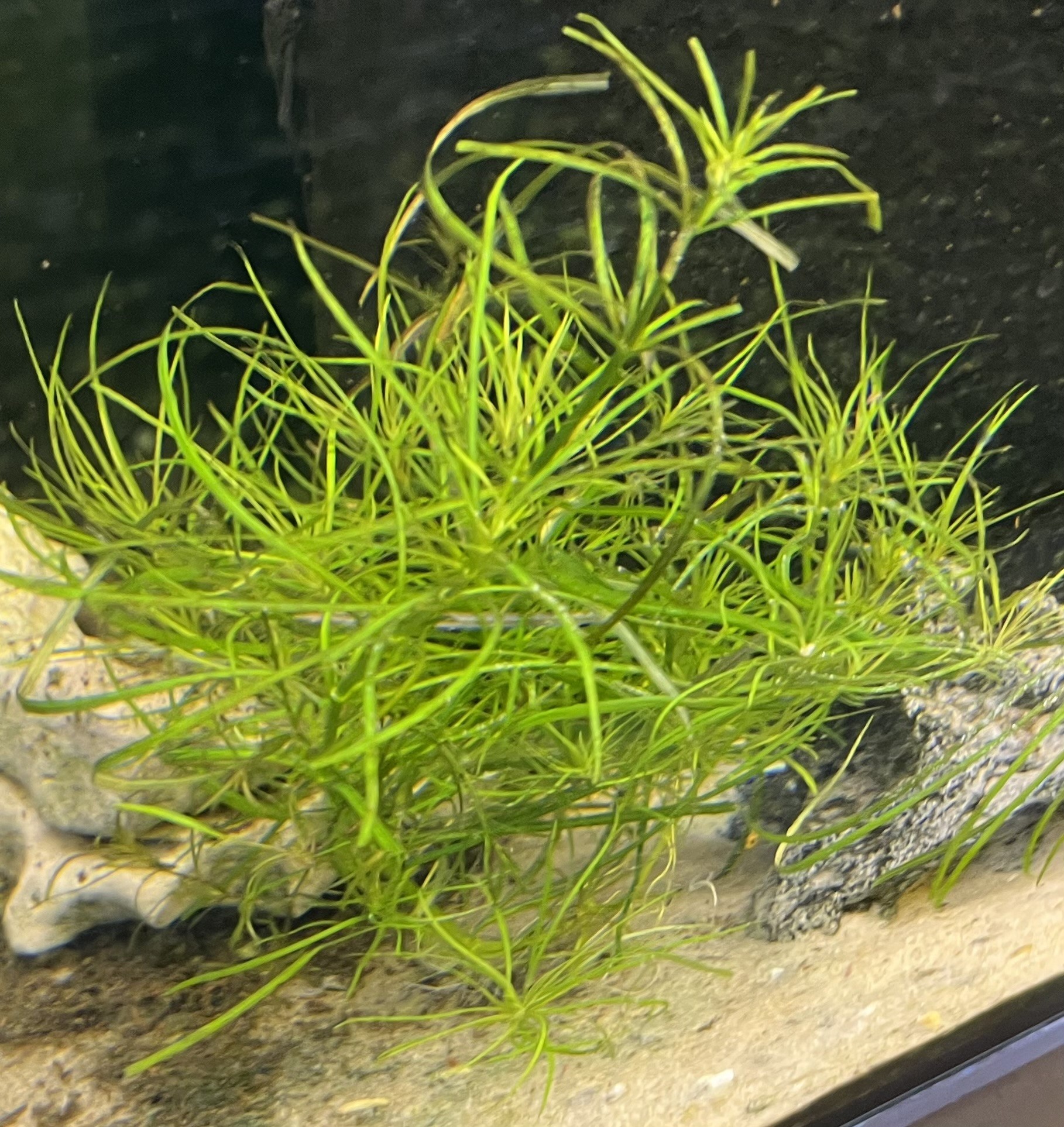In der Landform (emers) sind die Blätter breiter und kürzer als bei der submersen Pflanze. Ins Aquarium gepflanzt, bilden die emersen Stängel bald submerse Austriebe mit den typischen langen, schmalen Blättern.